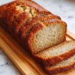 After baking, let your banana bread cool in the pan for about 10 minutes—this allows it to set so it won’t fall apart when you take it out. Then transfer it to a wire rack to cool completely. Cooling fully not only helps the flavors develop but also makes slicing more precise and less crumbly.