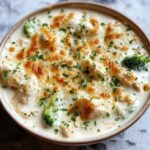 This Creamy Chicken Alfredo Dip is a luscious, cheesy appetizer that combines shredded chicken with a rich Alfredo sauce made from butter, garlic, cream cheese, mozzarella, and Parmesan. Perfectly seasoned with Italian herbs and baked to golden perfection, this dip serves as an irresistible treat for parties or cozy gatherings, paired perfectly with crackers, bread, or fresh veggies.