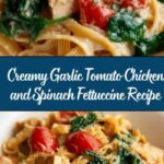 A rich and flavorful Creamy Garlic Tomato Chicken and Spinach Fettuccine that combines tender chicken breasts with sautéed garlic, cherry tomatoes, and fresh spinach in a luscious creamy Parmesan sauce. Perfect for a quick and satisfying weeknight dinner, this dish brings Italian-inspired comfort with vibrant fresh ingredients and a silky sauce served over perfectly cooked fettuccine pasta.