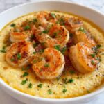 This Creamy Lowcountry Shrimp and Grits recipe features a rich and flavorful combination of cheesy grits and a savory shrimp and andouille sausage gravy. Slow-simmered grits are enriched with sharp cheddar and cream, while the shrimp and sausage are sautéed with aromatic vegetables and finished with a creamy, spiced sauce, making it a quintessential Southern comfort dish perfect for any meal.