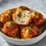 Crispy Reuben Balls are a delightful and savory appetizer combining shredded corned beef, sauerkraut, and Swiss cheese, coated in crispy breadcrumbs and deep-fried to golden perfection. Served warm with a spicy Thousand Island dip, these bite-sized treats capture all the flavors of a classic Reuben sandwich in a fun, easy-to-eat form.