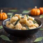 This Pumpkin Sage Gnocchi recipe combines tender homemade gnocchi infused with pumpkin puree and Parmesan cheese, tossed in a fragrant browned butter and crispy sage sauce. Perfect for a cozy fall meal, these soft pillows of dough offer a subtle sweetness from the pumpkin balanced by nutty browned butter and aromatic sage leaves, finished with optional toasted pine nuts for an added crunch.