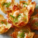 These crispy shrimp and cream cheese wontons combine a flavorful shrimp filling with creamy cheese, green onions, and aromatic seasonings, all wrapped in delicate wonton wrappers and deep-fried to golden perfection. Perfect as an appetizer or party snack, they offer a delightful crunch and a savory, creamy bite.