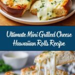 To impress your guests, present the Ultimate Mini Grilled Cheese Hawaiian Rolls Recipe on a beautiful wooden board or a rustic platter lined with parchment paper. Arrange with small bowls of dipping sauces such as chipotle mayo, honey mustard, or a tangy barbecue sauce. Garnish the platter with fresh herbs and pineapple slices for added tropical flair and visual appeal.