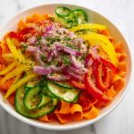 If you’re hunting for a refreshingly vibrant salad that packs a punch of flavor and color, the Viral Cucumber Pepper Salad Recipe is exactly what you need. This salad combines crisp Persian cucumbers, sweet mini bell peppers, and delicate carrot ribbons, all tossed in a luscious Asian miso ginger dressing and kicked up with chili crunch oil and everything bagel seasoning. It’s a delightful dance of textures and flavors that’s incredibly simple to whip up but impossible to forget. Whether you’re after a quick side dish or a standout salad for your next gathering, this recipe is a total game changer.